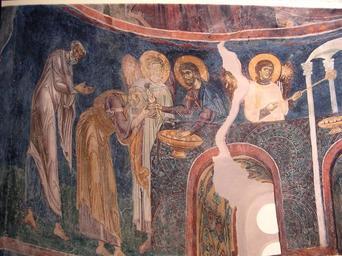 Keywords: Freski vo Sv. Pantelejmon od Nerezi 07.JPG mk Ф ески во Ц квата Св Пантелејмон во е ези Скопско en Frescos in St Pantaleon Church in Nerezi near Skopje in Macedonia ru Ф ески це кви Св Пантелеймона в е ези в акедонии http //sankire narod ru/Nerezi html Це ковь Св Пантелеймона е ези 1164г 1164 author PD-Macedonia PD-old-100 Paintings in St Panteleimon's Church Nerezi