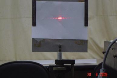 Keywords: Fresnel Diffraction experiment DSC04573.JPG en Setting up apparatus to obtain experimental results from the Fresnel single slit diffraction experiment Fringes in the bulkhead own Luiz Sauerbronn 2008-06-20 Diffraction