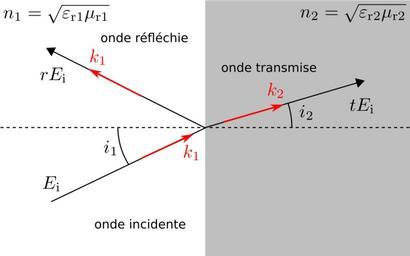 | Keywords: Fresnel-equations-sketch-fr.svg Fresnel equations sketch of reflection and refraction with electric field amplitudes expressed as a function of that of the incoming wave and Fresnel coefficients Also drawn and labelled angles with the normal wave numbers and refracting indices Coefficients de Fresnel schéma de la réflexion et de la réfracion avec les amplitudes du champ électrique indiqués comme fonctions de celle l'onde incidente et des coefficients de Fresnel Sont aussi indiqués les angles avec la normale les nombre d'ondes et les indices de réfraction Made with inkscape Brachycerophilia 2008-06-01 Fresnel equations diagrams Created with Inkscape |