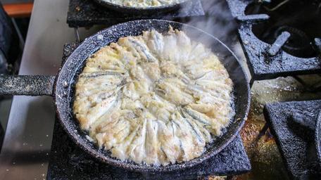Keywords: fried anchovy frying pan cooking fish food seafood restaurant meal delicious sea cuisine healthy menu dinner anchovy cook tasty eat stove sea food fresh fried pan