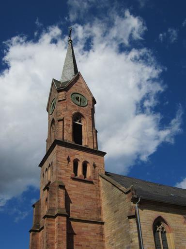 Keywords: friedenskirche kirkel church building tower front steeple spire facade exterior religious historic architecture