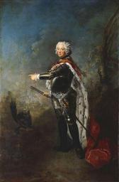 | Keywords: Friedrich II. of Prussia c. 1736.jpg w Friedrich II of Prussia 1712-1786 c 1736 Oil on canvas cm 265 8 177 7 Institution Royal Collection object history accession number RCIN 406797 406797 other versions PD-old-100-1923 DEFAULTSORT 1736c; Frederick II Antoine Pesne 18th-century portrait paintings in the Royal Collection of the United Kingdom Baroque paintings in the Royal Collection of the United Kingdom Friedrich II of Prussia in portraits 1736 oil on canvas paintings in the United Kingdom Portrait 1736 portrait paintings from France Male 18th-century oil portraits of standing men at full length wearing armour Ermine clothing in art Fur fashion in 1736 Military helmets in portraits Paintings by Antoine Pesne with fur Pointing with the index finger in portrait paintings Portrait paintings of men with swords Portrait paintings with natural background Portraits holding baton |