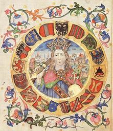 | Keywords: Friedrich III. (Greiner Marktbuch).jpg Friedrich III Miniatur im Greiner Marktbuch Scan aus Rudolf Lehr “ Landeschronik Oberösterreich Wien Verlag Christian Brandstätter 2004 S 103 ISBN 3-85498-331-X author ~ 1490 PD-old-100 Frederick III Holy Roman Emperor 15th-century illuminated manuscripts History of Grein Males with swords in art Medieval miniatures of historical persons Illuminated archival materials Historical coats of arms of Austria Coats of arms of Austria to be classified Coats of arms in medieval miniature |