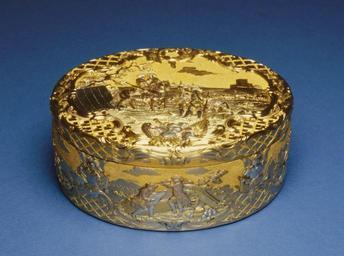 | Keywords: Friedrich Joseph Kolbe - Snuffbox with Military Scene - Walters 57261.jpg Kolbe a goldsmith who moved from Wurzburg Germany to St Petersburg in 1793 was known for his large richly ornamented boxes made of multicolored gold late Other date century 18 quatre-couleur gold cm 4 6 10 2 accession number 57 261 9860 Alexandre Polovtsoff Aleksandr Aleksandrovich Polovtsov Paris date and mode of acquisition unknown Henry Walters city Baltimore Walters Art Museum Henry Walters Acquired by Henry Walters 1930 Signature J-F-Kolb a St Petersbourg Russian Art Icons and Decorative Arts from the Origin to the Twentieth Century The Walters Art Gallery Baltimore 1959-1960 Objects of Vertu Precious Works of the Eighteenth Century The Walters Art Gallery Baltimore 1984 place of origin St Petersburg Russia Walters Art Museum license Media contributed by the Walters Art Museum needs category review Snuffboxs in the Walters Art Museum Friedrich Joseph Kolbe |
