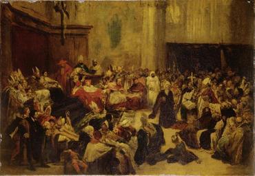 | Keywords: Friedrich Karl Hausmann - Galilei vor dem Konzil (1852).jpg Friedrich Karl Hausmann 1825 - 1886 Entwurf zu dem 1861 datierten Gemälde der Hamburger Kunsthalle date 1852 oil canvas cm 63 5 91 5 institution Wallraf-Richartz-Museum accession number WRM 1130 object history Otto Lingner Berlin ab 1906<br/>Berlin private Sammlung<br/>1922 als Geschenk von Albert Ottenheimer Köln für das Wallraf-Richartz-Museum erworben credit line exhibition history Deutsche Jahrhundertausstellung Königliche Nationalgalerie Berlin 05010659 <gallery>Jahrhundertausstellung 1906 KatNr 0686 jpg </gallery> PD-old-100 DEFAULTSORT Hausmann Friedrich Karl; Galilei before the Council 1852; Wallraf-Richartz-Museum Friedrich Karl Hausmann German paintings in the Wallraf-Richartz-Museum Galileo Galilei Images from Bildarchiv Foto Marburg |