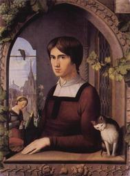 | Keywords: Friedrich Overbeck 010.jpg Artwork Creator Friedrich Overbeck de Porträt des Malers Franz Pforr 1810 Oil on canvas cm 62 47 Institution Alte Nationalgalerie de Nazarener The Yorck Project 10 000 Meisterwerke der Malerei DVD-ROM 2002 ISBN 3936122202 Distributed by DIRECTMEDIA Publishing GmbH http //mail wikipedia org/pipermail/wikide-l/2005-April/012195 html other versions PD-old-100 PD-Art-YorckProject Friedrich Overbeck 1810 19th-century portrait paintings in the Alte Nationalgalerie 1810c Franz Pforr 1810s paintings in Germany 1810 oil on canvas paintings Portrait 1810 portrait paintings from Germany Male 19th-century men looking at viewer in art 19th-century oil on panel paintings 19th-century paintings of cats 19th-century oil on canvas paintings in Germany 19th-century oil portraits of men at half length 1810 19th-century portrait paintings in Germany 1810 19th-century portrait paintings with birds 1810 19th-century portrait paintings with cats 1810 Lilies in art Males with cats in art Oil paintings of birds Portrait paintings of men with animals 1810c Portrait paintings of painters 1810c Portraits through a window 1810c Romantic portrait paintings Three-quarter view portrait paintings of men facing left |