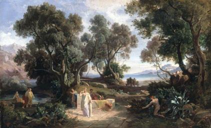 | Keywords: Friedrich Preller der Ältere - Odysseus nähert sich hilfesuchend der Nausikaa (1865-1868).jpg artwork Creator Friedrich Preller der Ältere langSwitch Verkleinerte Wiederholung nach dem http //www bildindex de/bilder/d/fmlac9079_20 Wandbild von Friedr Preller d Ä im Neuen Museum Weimar Small version after the http //www bildindex de/bilder/d/fmlac9079_20 wall painting by Friedrich Preller the Elder in the Neues Museum Weimar 155 × 248 cm<ref> 20367561 </ref> circa 1863 - 1865 wax canvas cm 42 67 Institution Kunsthalle Kiel 693 b <small> reflist </small> FP ~ lower left signature http //www museen-sh de/Objekt/DE-MUS-076017/lido/693+b Museumsverband Schleswig-Holstein und Hamburg e V <gallery> File Friedrich Preller der Jüngere - Odysseus approaches Nausicaa 1865-1868 jpg Fr Preller d J langSwitch žOdysseus approaches Nausicaa žOdysseus naht sich Nausikaa 1865-1868 F Preller d Ä File Friedrich Preller der Ältere - Odysseus and Nausicaa 1864 jpg F Preller d Ä žOdysseus and Nausikaa 1864 Collection Graf Raczynski File Johann Anton Castell - Odysseus und Nausikaa after Friedrich Preller 1861 jpg Johann Anton Castell 1810-1867 langSwitch žOdysseus approaches Nausicaa žOdysseus naht sich Nausikaa 1861 F Preller d Ä </gallery> PD-old-100 Friedrich Preller der Ältere Paintings in Kunsthalle Kiel Nausicaa Odysseus in paintings 1860s oil on canvas paintings 1860s mythological paintings 1860s paintings in Germany |