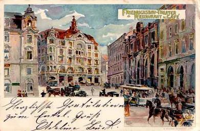 | Keywords: Friedrichsbau theater-1903.jpg Stuttgart Friedrichsbau-Theater a variety theatre built 1900 by Bihl and Woltz The complex also included shops offices and a café Destroyed by bombs on 25 July 1944 Finally demolished 1955 in favour of a street Postcard before 1903 Friedrichsbau-Theater Stuttgart/Germany und Centralbahnhof 1903 Source http //www andreas-praefcke de/carthalia/germany/stuttgart_friedrichsbau_old htm PD-old-70-1923 Alter Friedrichsbau Stuttgart Images from Carthalia Postcards of Stuttgart |