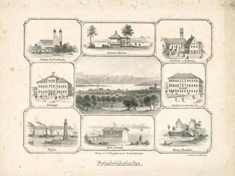 | Keywords: Friedrichshafen c1850.jpg Friedrichshafen Sammelbild mit à berblick und Nebenansichten Schloss Friedrichshafen Kloster Hofen Camera obscura Stadtkirche und Rathhaus Gasthof zum deutschen Haus Ruine Montfort Burgruine Argen heute dort Schloss Montfort in Langenargen Bade-Anstalt Hafen Bahnhof ; WLB Stuttgart http //digital wlb-stuttgart de/purl/bsz359023290 ~ 1850 Josef Gerstmeyer PD-old-100 Friedrichshafen in art 1850s lithographs Burg Argen Collections of Württembergische Landesbibliothek |
