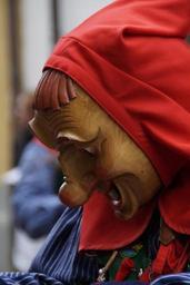 Keywords: friendly profile human smile portrait strassenfasnet fools jump swabian alemannic fasnet move haes mask carnival masquerade costume panel tradition customs haestraeger wooden mask carved custom fig fools guild guild group face