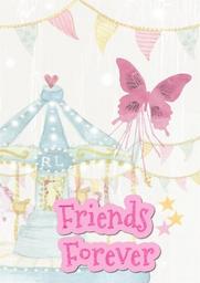 Keywords: friends forever friendly card greeting carousel pink bird girl celebration event happy birthday party cake design family fun gift colorful happiness humor joy joyful day invitation birthday card anniversary age drawing woman