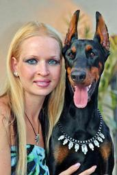 Keywords: friendship doberman pinscher yorkshire terrier woman pets dogs love excursion friend nature