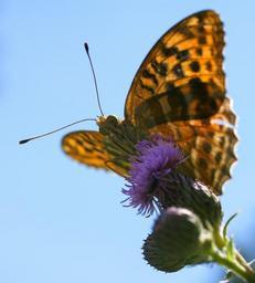 Keywords: fritillary argynnis paphia butterfly macro thistle thistle flower violet purple close