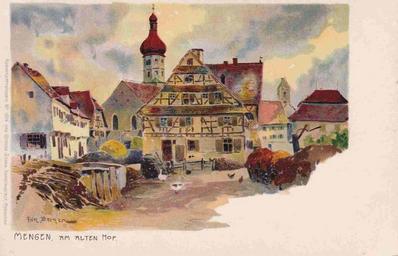 | Keywords: Fritz Bergen AK Mengen.jpg Mengen Am Alten Hof Verlag Ottmar Zieher München Künstlerpostkarte Nr 1526 http //www eurocards de/katalog/kuenstler_bergen1 html ~ 1900 Creator Fritz Bergen PD-old-auto-1923 1941 Fritz Bergen Mengen Our Lady Church Mengen Timber framing in Mengen Ottmar Zieher |