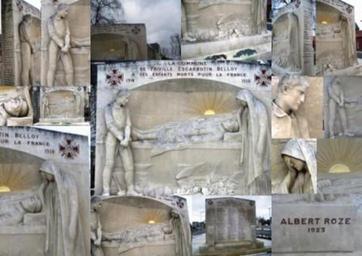 | Keywords: Friville-Escarbotin.jpg en A montage of photographs of the monument aux morts at Friville-Escarbotin in the Somme region of France This monument aux morts features sculptural work by Albert-Dominique Roze The monument aux morts dates from 1924 and covers the three communities of Friville Escarbotin and Belloy It was inaugurated on the 3rd August 1924 and stands in a square on the outskirts of the village In the composition we see a widow morning a dead soldier balanced against a young man standing over agricultural and industrial tools and representing the young generation who will be charged with rebuilding France; the rising sun gives a sense of renewal It was erected on land in front of the then Friville railway station own Weglinde/Gordon Lawson War memorials in Somme Friville-Escarbotin |