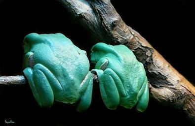 Keywords: frog close frogs amphibian green creature animal animals color pair two together sit squat road funny exotics exotic nature fauna rarity jungle