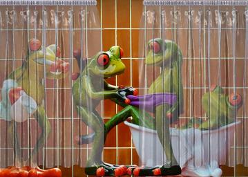 Keywords: frogs bathroom curious funny cute frog sweet fun bath swim brushing teeth wash body care