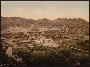 | Keywords: From the West, Cetinje, Montenegro WDL2608.png Artwork ru Вид с запада Цетине Че ного ия fr De l'ouest Cetinje Monténégro en From the West Cetinje Montenegro zh 放 西部,采蒂涅,黑山 pt Do Oeste Cetinje Montenegro ar من الغرب، سيتينيي، مونتينيغرو ru Этот цветной снимок конца XIX века относится к се ии Виды Че ного ии входящей в каталог компании Дет ойт Паблишинг Кампани а нем изоб ажен го од Цетине столица Че ного ии независимого княжества кото ое отделилось от Османской импе ии в 1878 году Согласно инфо мации п иведенной в издании Бедеке а <i> Авст ия а также Венг ия Т ансильвания Далмация и Босния </i> 1900 г в то в емя в го оде Цетине п оживало 3000 человек В некото ых отношениях этот го од напоминает небольшой немецкий го одок в сельской местности но он обладает и своими уникальными че тами Сам го од можно осмот еть за один час но Вы с удовольствием п оведете целый день наблюдая за жизнью его жителей и их особенностями Дет ойт Фотог афик Кампани была основана в конце 1890 годов в качестве издательской компании выпускающей фотоп одукцию бизнесменом из Дет ойта Уильямом А Ливингстоном младшим совместно с фотог афом и фотоиздателем Эдвином Г Хаше ом Они п иоб ели эксклюзивные п ава на использование п оцесса фотох оми ования изоб етенного в Швейца ии Фотох оми ование использовалось для п ев ащения че но-белых фотог афий в цветные и последующей печати фотог афий методом фотолитог афии Благода я этому п оцессу стало возможно массовое п оизводство цветных отк ыток снимков и альбомов для п одажи на аме иканском ынке В 1905 году компания была п еоб азована в Дет ойт Паблишинг Кампани <br>Го ода и поселки; Го одские пейзажи fr Ce cliché photochrome de la fin du 19ème siècle est extrait de Vues du Monténégro dans le catalogue de la Detroit Photographic Company Il représente la ville de Cetinje la capitale du Monténégro une principauté indépendante qui s'est séparée de l'Empire ottoman en 1878 Selon l'ouvrage de Baedeker <i>l'Autriche dont la Hongrie la Transylvanie la Dalmatie et la Bosnie</i> 1900 Cetinje comptait 3 000 habitants à l'époque certains égards l'endroit ressemble à un petit village allemand mais elle a plusieurs caractéristiques qui lui sont propres On peut en faire le tour en une heure mais une journée entière peut être consacrée de manière plaisante à l'observation des autochtones et de leurs particularités La Detroit Photographic Company est une entreprise d'édition photographique créée à la fin des années 1890 par un homme d'affaires et éditeur de Détroit William A Livingstone Jr et le photographe et photo-éditeur Edwin H Husher Ils obtinrent les droits exclusifs d'utilisation du processus suisse Photochrome pour la conversion de photographies noir et blanc en images couleur ainsi que leur impression par photolithographie Ce processus permit la production en série de cartes postales gravures et albums en couleur vendus sur le marché américain L'entreprise est devenue la Detroit Publishing Company en 1905 <br>Petites et grandes villes; Paysages urbains en This late-19th century photochrome print is from Views of Montenegro in the catalog of the Detroit Publishing Company It depicts the town of Cetinje the capital of Montenegro an independent principality that separated from the Ottoman Empire in 1878 According to Baedeker s <em>Austria Including Hungary Transylvania Dalmatia and Bosnia</em> 1900 Cetinje had 3 000 inhabitants at the time In some respects the place resembles a little German country town but it has several distinctive features of its own It may be seen in an hour but a whole day may be pleasantly spent in observing the natives and their peculiarities The Detroit Photographic Company was launched as a photographic publishing firm in the late 1890s by Detroit businessman and publisher William A Livingstone Jr and photographer and photo-publisher Edwin H Husher They obtained the exclusive rights to use the Swiss Photochrom process for converting black-and-white photographs into color images and printing them by photolithography This process permitted the mass production of color postcards prints and albums for sale to the American market The firm became the Detroit Publishing Company in 1905 <br>Cities and towns; Cityscapes zh 这张 19 世纪晚 的彩色照片出自底特律摄影公司目录中的 黑山共和国风光 部分 照片描绘了黑山都会采蒂涅镇,黑山于 1878 年脱离奥托曼 国,成为 个独立的共和国 根据 德克尔的 <i> 奥 利,包括匈牙利 特兰西瓦尼亚 达尔马提亚 波斯尼亚 </i> (1900 年版),采蒂涅当时只 3000 居民 某些方 ,它与德国的乡 小镇十分相似,但也 其自身的特色 或许您 个小时就能游览完整个城镇,但如 您用 天时间欣赏这里的 著居民以及他们的特 可能会别