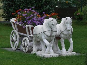 Keywords: front yard flowers coach horses kitsch romance color