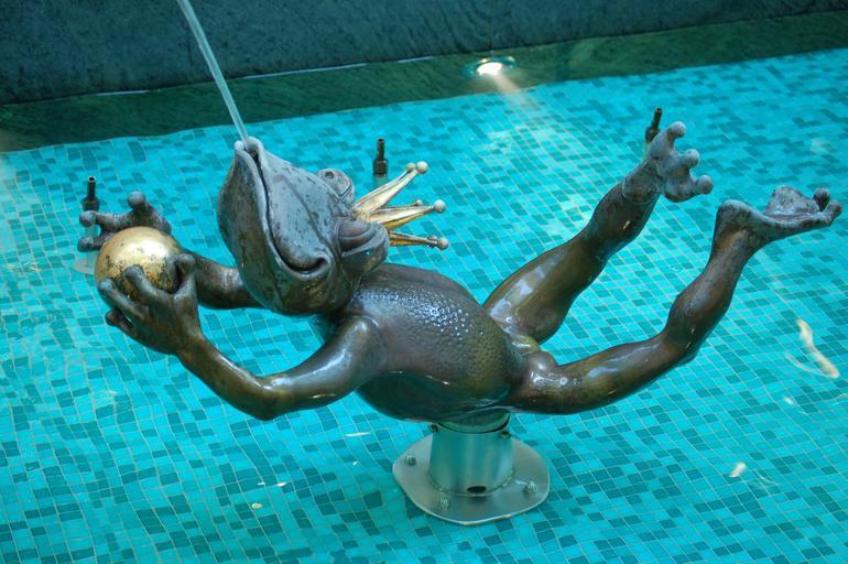 Keywords: Frosch-könig.JPG Froschkönig Märchen Brunnen Wasser im sprung Frog king fairy tale well water in the jump 2006-05-07 own assumed Kintaiyo Frog Prince Sculptures of frogs Jumping animals in art Fountains in Germany