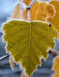 Keywords: frost autumn birch leaf nature hoarfrost frozen plant leaves frosty branch
