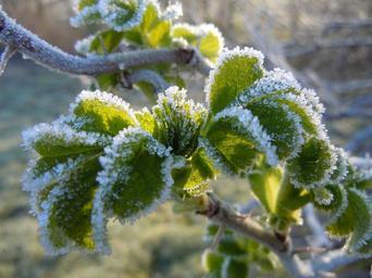 Keywords: frosted leaves wild rose hoarfrost spring morning
