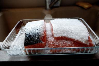 Keywords: frozen salmon fish ice food dish thaw