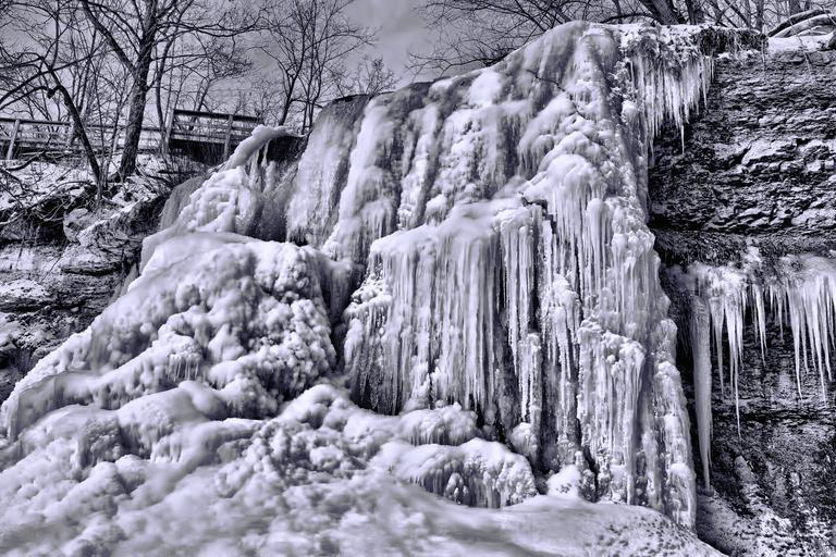 Keywords: frozen waterfalls canada black and white