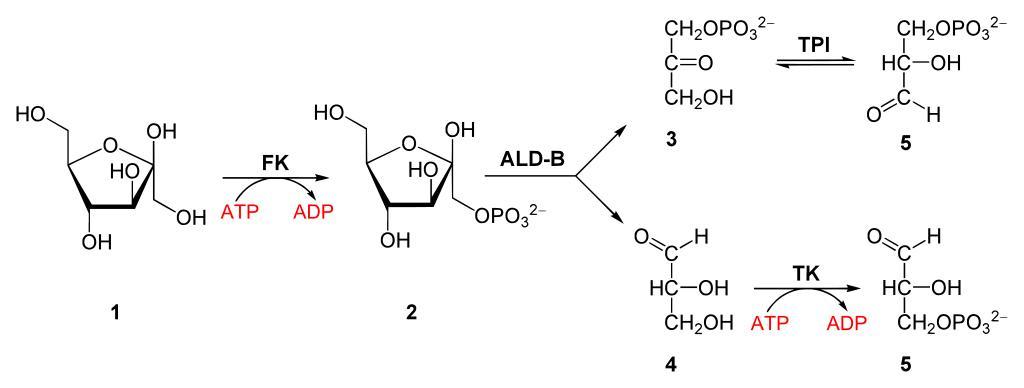 | Keywords: Fructose in glycolysis.svg en metabolism of fructose 1 for entering the glycolysis Fructose-1-phosphate 2 dihydroxyacetone phosphate 3 glyceraldehyde 4 glyceraldehyde 3-phosphate 5 ; fructokinase FK aldolase B ALD-B triosephosphate isomerase TPI triose kinase TK de Metablisierung von Fructose 1 für den Eintritt in die Glykolyse Fructose-1-phosphat 2 Dihydrogenacetonphosphat 3 Glycerinaldehyd 4 Glycerinaldehyd-3-phosphat 5 ; Fructokinase FK Aldolase B ALD-B Triosephosphat-Isomerase TPI Triosekinase TK own Yikrazuul 2009-11-12 Glycolysis Fructose |