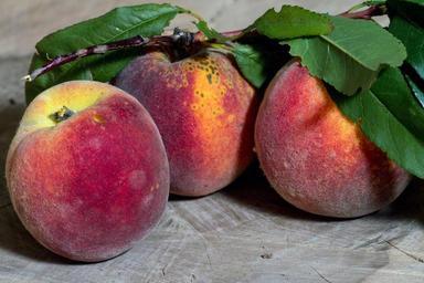 Keywords: fruit peaches branch ripe leaves stone fruit orchard