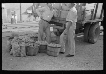 Keywords: Fruit Peddlers.jpg en Peddlers selling apples in 1938 2013-12-03 10 40 06 Farm Security Administration Russell Lee PD-USGov Uploaded with UploadWizard 1938 photographs