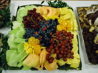 Fruit tray including pineapple honeydew melon oranges grapes.JPG (2592x1944)