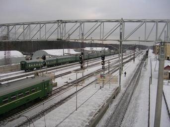 Keywords: Fryazevo station.JPG en Fryazevo railway station Moscow Oblast Russia from bridge to rhe east ru Ж/д станция Ф язево линии осква ижний овго од вид с пешеходного мостика на восток Own Burger 03 01 2009 Fryazevo railway station