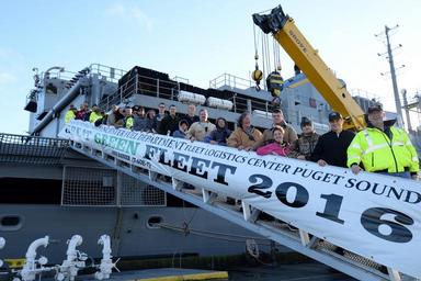 | Keywords: Fuel depot operations 160120-N-NY993-089.jpg en 160120-N-NY993-057 MANCHESTER Wash - The Manchester Fuel Depot team poses on the brow of the USNS Rainier T-AOE 7 just before the ship departed Jan 20 The fuel depot managed by NAVSUP FLC Puget Sound issued more than million gallons of a marine diesel biofuel blend to Rainier before the ship's Jan 20 departure The fuel will be used to power surface ships attached to the USS John C Stennis Carrier Battle Group during its historic Great Green Fleet Deployment Photo by Brian J Davis <br>Unit Navy Media Content Services 2016-01-22 Brian Davis https //www dvidshub net/image/2385094/fuel-depot-operations 160120-N-NY993-089 2016-02-05 07 37 MANCHESTER WA US PD-USGov-Military-Navy USS John C Stennis CVN-74 Images from DoD uploaded by Fæ |