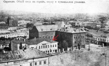 | Keywords: Fuersorgekontor1917.jpg ru Общий вид Са атов Слева от музыкального училища - бывшая конто а опекунства иност анных поселенцев 1917 Почтовая отк ытка 1917 года Postcard from 1917 author Custom license marker 2012 03 21 PD-Russia-2008 PD-US-1923 Uploaded with UploadWizard History of Saratov |