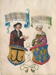 | Keywords: Fugger Ehrenbuch 038.jpg Geheimes Ehrenbuch der Fugger hergestellt in der Werkstatt Jörg Breu d J 1545 “1549<br /> Portrait- und Wappendarstellung http //daten digitale-sammlungen de/~db/0004/bsb00042105/images/ 1545 “1549 workshop PD-old-100 Geheimes Ehrenbuch der Fugger Portraits in Geheimes Ehrenbuch der Fugger Coats of arms in Geheimes Ehrenbuch der Fugger Coats of arms of Fugger von der Lilie family Coats of arms of families of Germany - M Muhlich | ||||