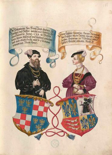 | Keywords: Fugger Ehrenbuch 101.jpg  Geheimes Ehrenbuch der Fugger hergestellt in der Werkstatt Jörg Breu d J 1545 “1549<br /> Portrait- und Wappendarstellung Johann Jakob von Mörsperg Freiherr von Belfort und Regina Fugger http //daten digitale-sammlungen de/~db/0004/bsb00042105/images/ 1545 “1549 workshop PD-old-100 Geheimes Ehrenbuch der Fugger Portraits in Geheimes Ehrenbuch der Fugger Coats of arms in Geheimes Ehrenbuch der Fugger Coats of arms of Fugger von Kirchberg und Weißenhorn family Coats of arms of Mörsperg family |