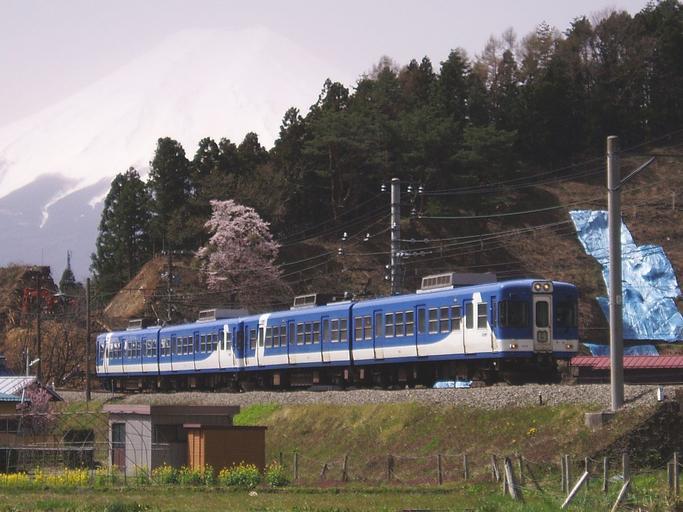 Keywords: Fujikyu Line.jpg Fujikyu Train Between Mitsutouge Sta and Kosobuki Sta 富士 行の電車 Photo by Cassiopeia_sweet 2008-04-15 Cassiopeia_sweet Fujikyu 1000 series Trains with Mount Fuji Spring in Japan