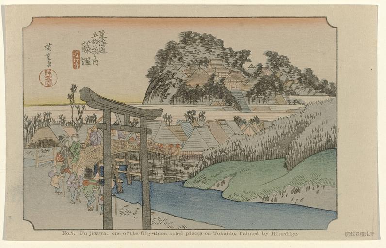 | Keywords: Fujisawa-Rijksmuseum RP-P-2010-310-95-7.jpeg accession number RP-P-2010-310-95-7 Utagawa died 1858; Fujisawa Bunjirô Fujisawa BunjirôHiroshige I credit line nl Reizgers lopen over een bruggetje richting een dorpje in de voorgrond een toegangspoort torii Label Line mentioned on object Hiroshige I Utagawa 1797 - 1858 1906 kleurenhoutsnede; lijnblok in zwart met kleurblokken Collection prenten; Japan collectie kaart Height mm 90 kaart Width mm 141 exhibition history cardboard object history Acquisition 2009-10-13 object type PD-US PD-old Data and photography rights All data and all images made available through the API are either in the public domain or are subject to a CC0 license https //www rijksmuseum nl/en/api/terms-and-conditions-of-use cc-zero place of creation Japan http //www rijksmuseum nl/collectie/RP-P-2010-310-95-7 http //hdl handle net/10934/RM0001 COLLECT 490395 handle Fujisawa Uploaded with GWToolset Rijksmuseum RP-P-2010-310-95-7 http //www rijksmuseum nl/media/assets/RP-P-2010-310-95-7 Images uploaded by Fæ Japanese 20th-century prints in the Rijksmuseum Amsterdam Images from the Rijksmuseum |