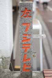 Keywords: Fujitv kawadacho kanban.jpg ja 新宿区河田町のフジテレビ旧 社周辺で撮影 2011年現 も撤去されずに残っている案内 2011-10-23 own Sat666 35 42 5 195 N 139 46 24 678 E alt 311 5_source exif_heading cc-zero Uploaded with UploadWizard Fuji Television headquarters Kawada-chō Shinjuku Katakana signs 5 letter 左 Stone signs in Japan Kanji signs 1 letter Vertical signs in Japan Red letter signs in Japan Orange letters