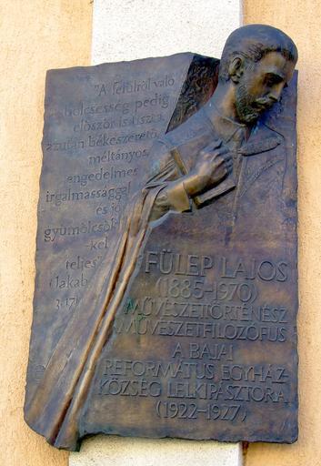 | Keywords: Fülep Lajos Baja.JPG Fülep Lajos emléktáblája a bajai református templom falán Csíkszentmihályi Róbert alkotása 1997 own photo by uploader photo 2007 ; relief 1997 own photo ; sculptor Róbert Csíkszentmihályi Reliefs in Baja Plaques in Baja Plaques to teachers in Hungary Plaques to scientists in Hungary Plaques to priests in Hungary Lajos Fülep Róbert Csíkszentmihályi |