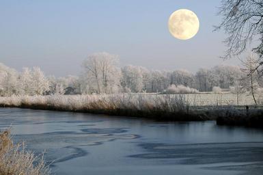 Keywords: full moon moon winter channel waters sky cold moonlight mystical wintry morning