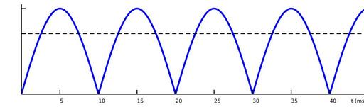 Keywords: Full-wave rectified sine.svg Diagram of a fully rectified 50 Hz sine wave The RMS effective value is indicated Own 2007-06-23 Pieter Kuiper Rectifier diagrams Created with Text Editor
