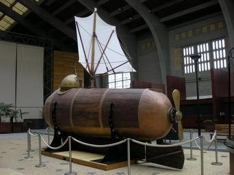 Keywords: FultonNautilus2.JPG Reconstitution du Nautilus 1799 de Robert Fulton à la Cité de la Mer Cherbourg Normandie Own 2008-04-18 Ji-Elle Cité de la Mer Nautilus submarine 1800