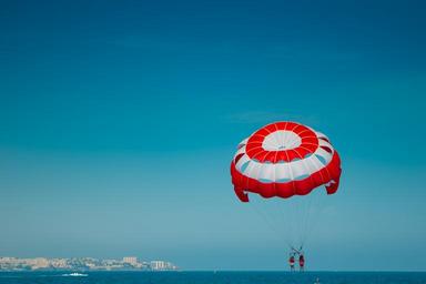 Keywords: fun balloon sport summer beach fly red white sky boat landscape
