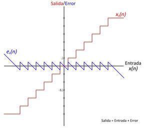 Keywords: FuncionTransferenciaCuantificador.svg Función de transferencia de un cuantificador se muestra error Own 2007-08-08 Jmcalderon Noise physics Quantization