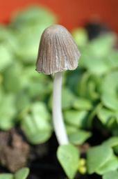 Keywords: Fungi with basil.jpg a fungi grows in the basil pot ein kleiner Pilz neben keimenden Basilikum own 2010-05-10 User Amada44 Images by Amada44 Ocimum basilicum Unidentified Coprinopsis