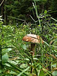 Keywords: fungus brown cap boletus grass forest macro bilberry