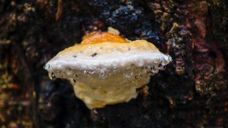 Keywords: fungus tree bark rain water droplets nature plant wood forest mushroom autumn fall drip raindrop
