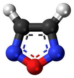 | Keywords: Furazan-3D-balls.png Ball-and-stick model of the furazan molecule also known as 1 2 5-oxadiazole a heterocycle and a simple aromatic ring Colour code 505050 Carbon C black<br> F0F0F0 Hydrogen H white<br> F51E1E Oxygen O red<br> 3C50FA Nitrogen N blue<br> 2011-05-31 own DS Visualizer Jynto talk Space-filling version cc-zero Oxadiazoles Simple aromatic rings Images by Jynto Ball-and-stick models | ||||